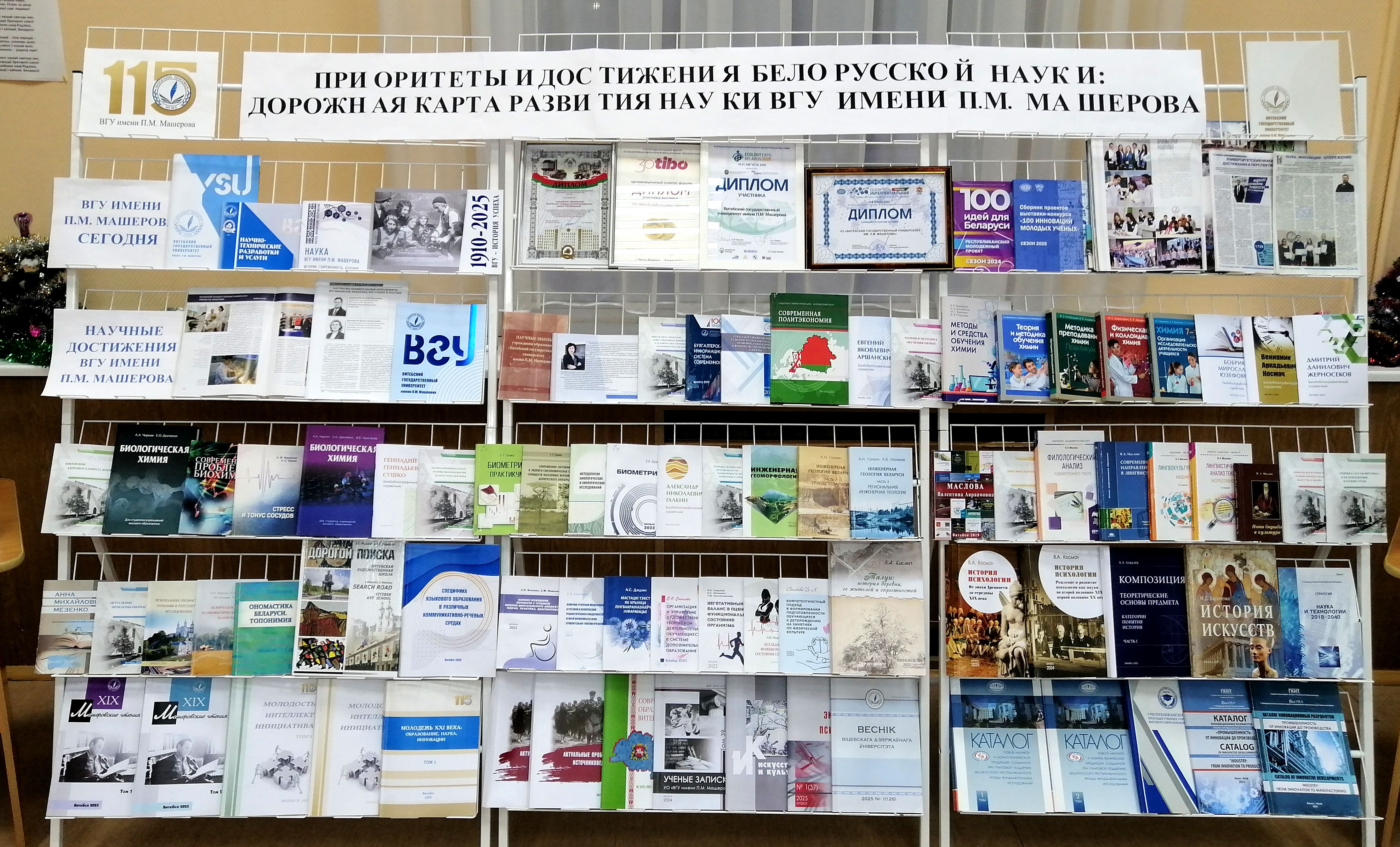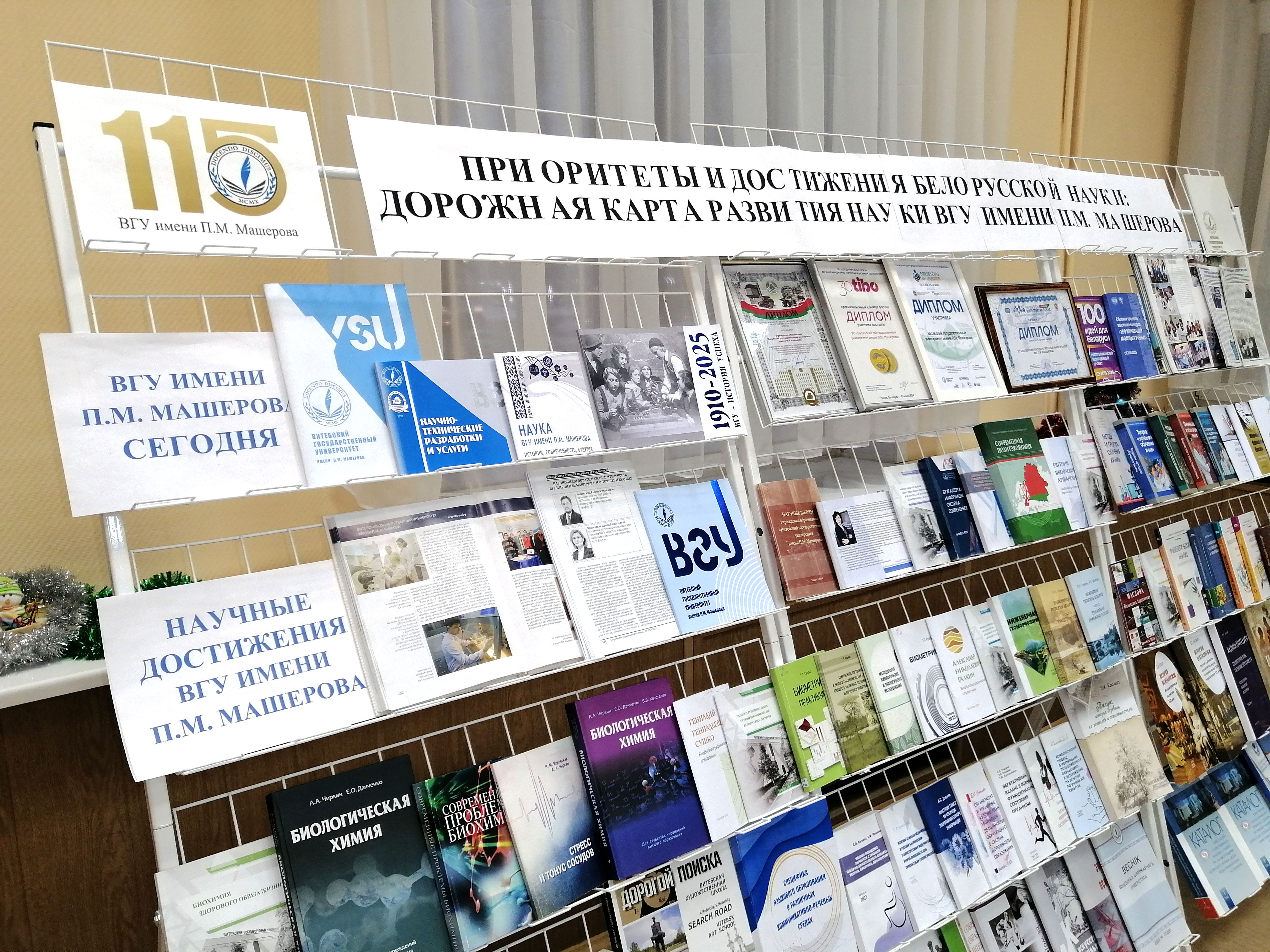 К важному событию в жизни научного сообщества страны и ВГУ имени П.М.Машерова научная библиотека подготовила книжную выставку «Приоритеты и достижения белорусской науки: дорожная карта развития науки ВГУ имени П.М. Машерова».