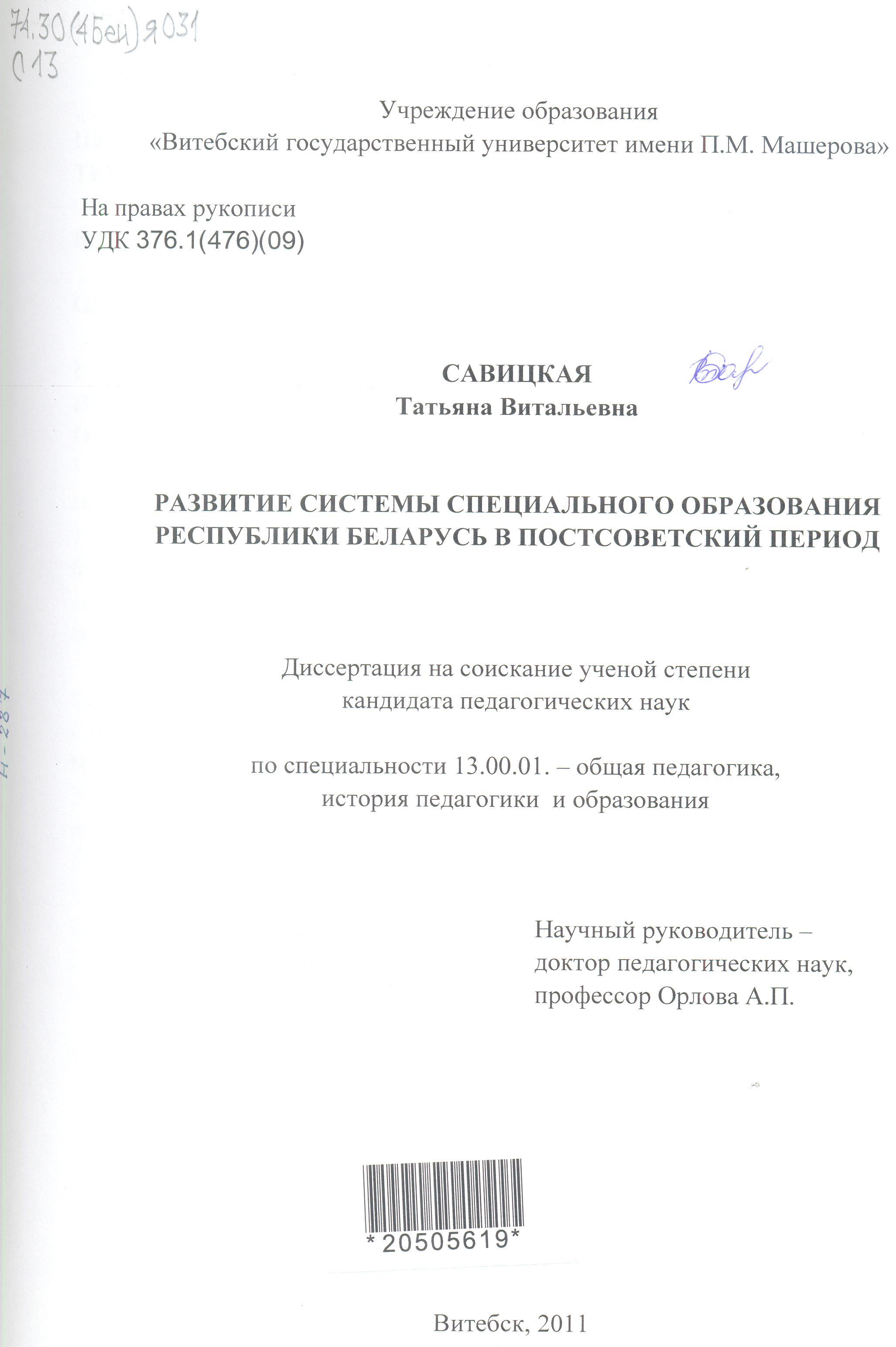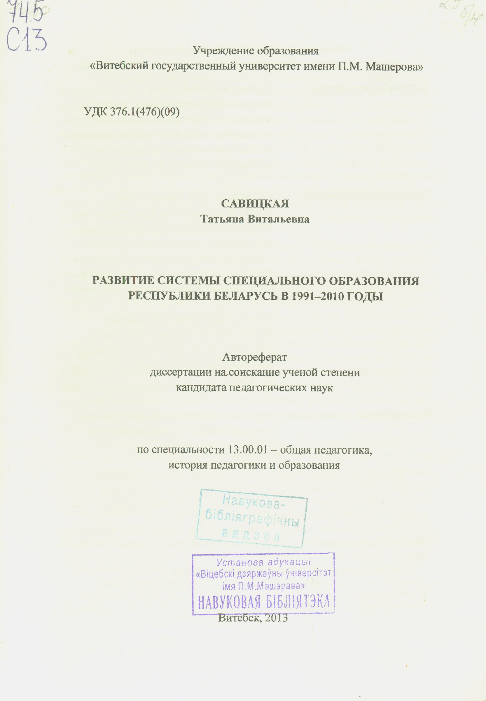 Федулова, Т. М. Коррекционное образование в Республике Беларусь на современном этапе / Т. М. Федулова, Е. А. Василенко (науч. рук.) // VII Машеровские чтения : материалы международной научно-практической конференции студентов, аспирантов и молодых ученых, Витебск, 24-25 сентября 2013 г. - Витебск : ВГУ имени П.М. Машерова, 2013. - С. 406-408. - Библиогр.: с. 408 (3 назв.).