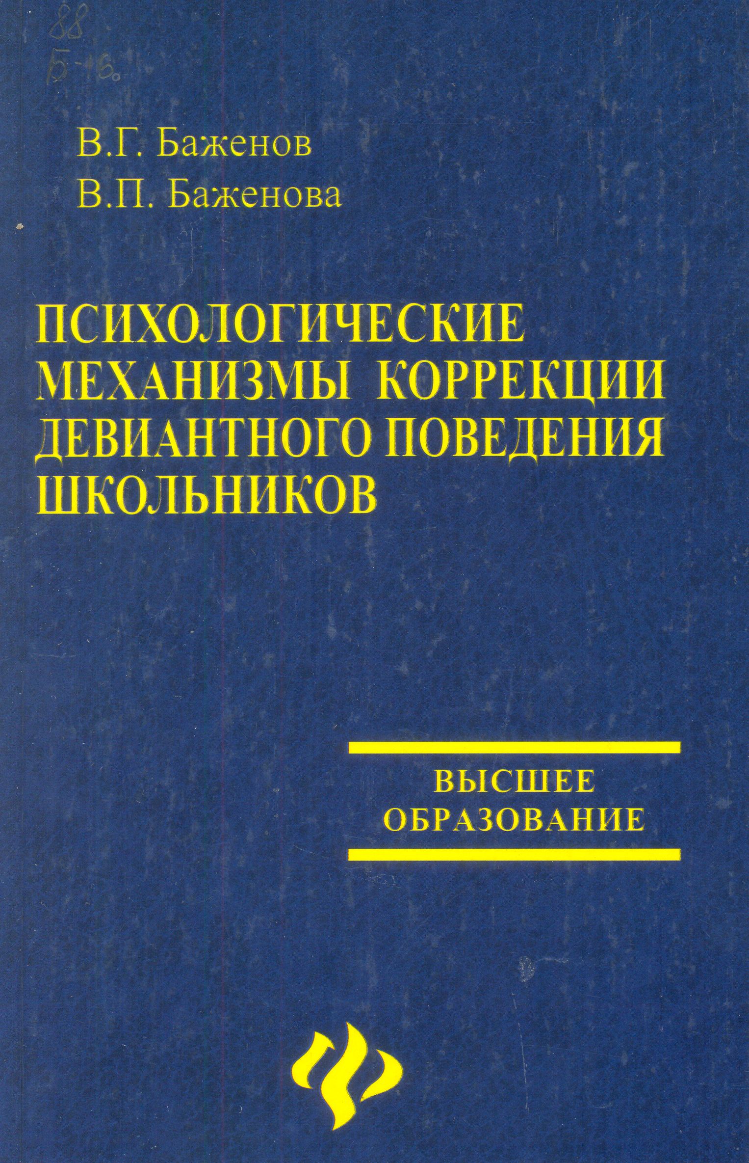 Баженов, В. Г. Психологические механизмы коррекции девиантного поведения школьников : учебное пособие / В. Г. Баженов. - Ростов-на-Дону : Феникс, 2006. - 224 с. - (Высшее образование). - Библиогр.: с. 186-198.