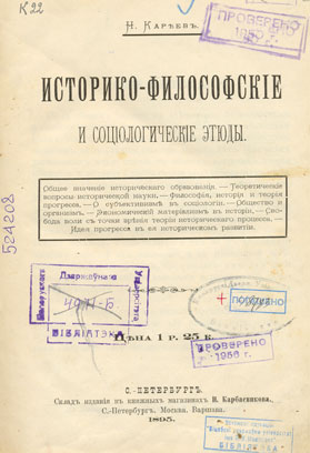 Историко-философскiе и социологическiе этюды. - С.-Петербург: Склад изданія в книжных магазинах Н. Карбасникова, 1895. - 300 с. - Библиогр.: с. 300.