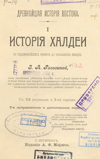 Исторія Халдеи с отдаленнейших времен до возвышенія Ассиріи : с 114 рисунками и 2-мя картами. - 2-е исправленное и дополненное изданiе . - С.-Петербург: Изданіе А.Ф. Маркса, [1902?]. - XIX, 447 с. - (Древнейшая исторiя Востока; Т. 1). - Библиогр.: с.1-4.