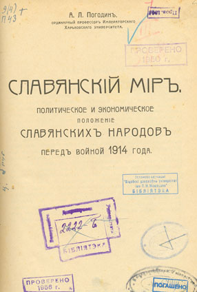 Славянскій мір. Политическое и экономическое положеніе славянских народов перед войной 1914 года. - [Москва], [1915] ([Типографія Т-ва И.Д. Сытина]). - VIII, 420 с. + 3 отд. л. карт. - Библиогр. в обл. ссылок.