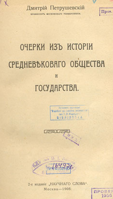 Очерки из исторіи средневековаго общества и государства. - 2-е изд. - Москва: Научнае слово, 1908 (Типо-литографія Т-ва И. Н. Кушнерев и К). - IV, 328 с. - Библиогр.: с. 37-38.