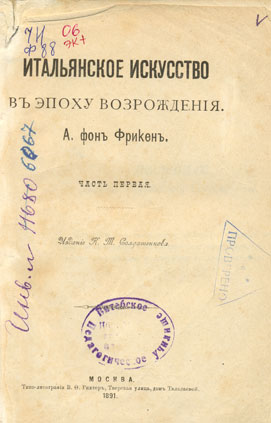Итальянское искусство в эпоху Возрожденiя. Часть первая. - Москва: Изданiе К.Т. Солдатенкова : Типо-литографiя В.Ф. Рихтер, 1891. - 311 с. - Библиогр. в обл. ссылок.