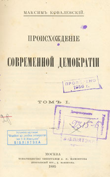Происхожденіе современной демократіи. Т. 1, ч. 1-4. - Москва, 1895 (Товарищество типографіи А.И. Мамонтова). - VIII, 660 с. - Библиогр. в обл. ссылок.