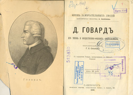 Д. Говард. Его жизнь и общественно-филантр. деятельность / бiографическiй очерк Г. Б. Слiозберга ; с портретом Говарда, гравированным в Лейпциге Геданом. - С.-Петербург, 1891 (Типографiя Товарищ."Общественная польза"). - 72 с., портр. - (Жизнь замечательных людей. Бiографическая библiотека Ф. Павленкова). - Библиогр.: с. 4.