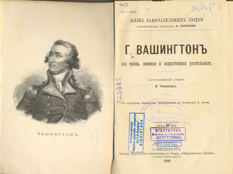 Г. Вашингтон. Его жизнь, военная и общественная деятельность: біографическій очерк. - С.-Петербург: Изданiе Ф. Павленкова, 1898 (Типогр. Высочайше утвержденнаго Товар. "Общественная Польза"). - 96 с. - (Жизнь замечательных людей. Бiографическая библiотека Ф. Павленкова). - Библиогр.: с. 4.
