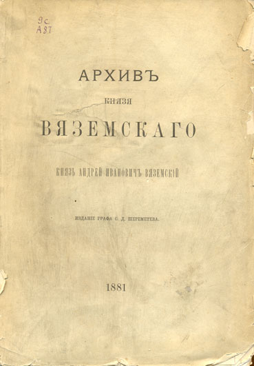 Архив князя Вяземскаго. - С.П.Б.: Изданiе графа С. Д. Шереметева, 1881. - LXII, 369 с.