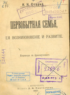 Первобытная семья, ея возникновеніе и развитіе: перевод с французскаго. - С.-Петербург: Изданіе Л. Ф. Пантелеева, 1901. - X, 385 с. - Библиогр. на с. 374-385 и в обл. ссылок.