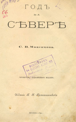 Год на Севере. - Четвертое, дополненное изданiе. - Москва: Изданiе П.К. Прянишникова, 1890. - VI, 698 с.