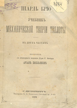Учебник механической теорiи теплоты: в 2 ч. / пер. с нем. изд. Г. Вебера А. Емельянов. - С.-Петербург: Типографiя В.А. Полетики, 1876. - XVI, 379 с.