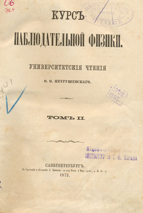 Курс наблюдательной физики: университетскiя чтенiя. Том I. - Санктпетербург: В Типографiи и Литографiи А. Траншеля, 1870. - XI, 533 с.: ил.