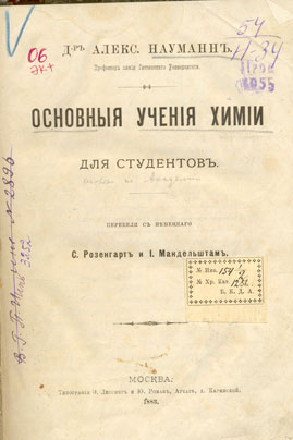 Основныя ученiя химiи: для студентов / пер. с нем. С. Розенгарт и I. Мандельштам. - Москва: Типографiя Э. Лисснер и Ю. Роман, 1883. - 295 с.