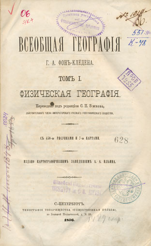 Первый том - "Физическая географiя" служит научным основанием всему сочинению "Всеобщая география". Книга является верным отражением современного на тот момент состояния географической науки, автор впервые распределил и сгруппировал rnв ней части Физической Географiи.