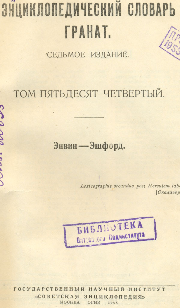 Т. 54 : Энвин - Эшфорд. - 7-е изд. - Москва : ОГИЗ : Советская Энциклопедия, 1948. - 838 стб., [9] вкл. л. ил.
