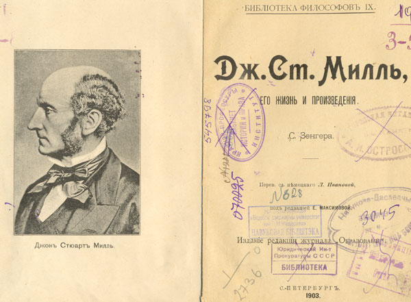 Зенгер, С.rn Дж. Ст. Милль, его жизнь и произведения / С. Зенгер ; пер. с нем. Л. Ивановой ; под ред. Е. Максимовой. - Санкт-Петербург : Изданiе редакцiи журнала "Образованiе", 1903. - II, 225 с., портр. - (Библiотека философов ; [Т.] 9). - Библиогр. в предисловии.