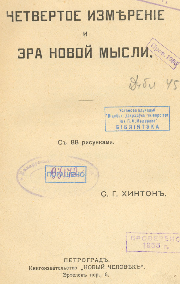Четвертое измереніе и эра новой мысли : с 88 рисунками / С. Г. Хинтон. - Петроград : Новый человек, [1915?]. - VII, 256, 8 с.