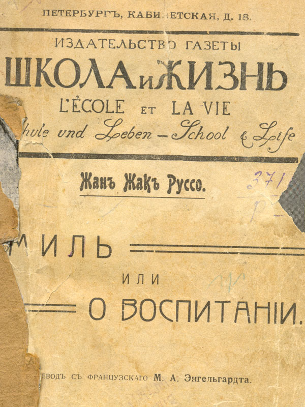Эмиль или о воспитанiи / Ж. Ж. Руссо ; пер. с фр. М. А. Энгельгардт. - Санкт-Петербург : Издательство газеты "Школа ижизнь", [1912?]. - 146 с. : портр., [1] ил. - Библиогр. в обл. ссылок. - Экз. деф.: нет с. 61-62, нет посл. с.