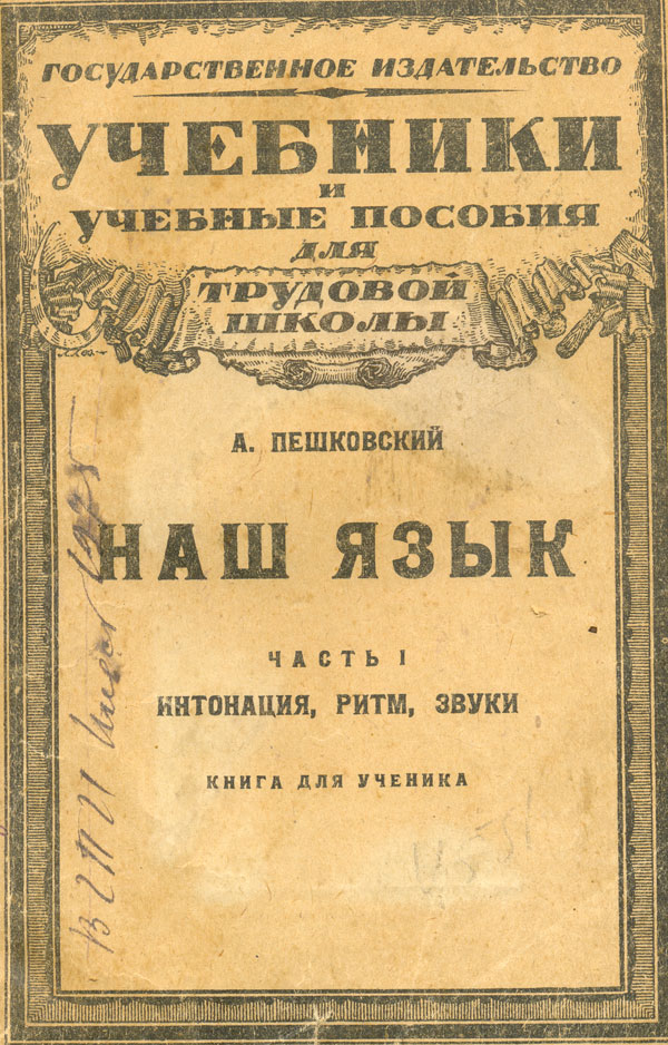 Наш язык : учебная книга по грамматике для школ 1 ступени : сборник для наблюдений над языком в связи с занятиями правописанием и развитием речи. Ч. 1 : Интонация, ритм, звуки / А. М. Пешковский. - Изд. второе, переработ. - Москва : Гос. изд.-во, [1923?]. - 112 с. - (Учебники и учебные пособия для школ I и II ступени).