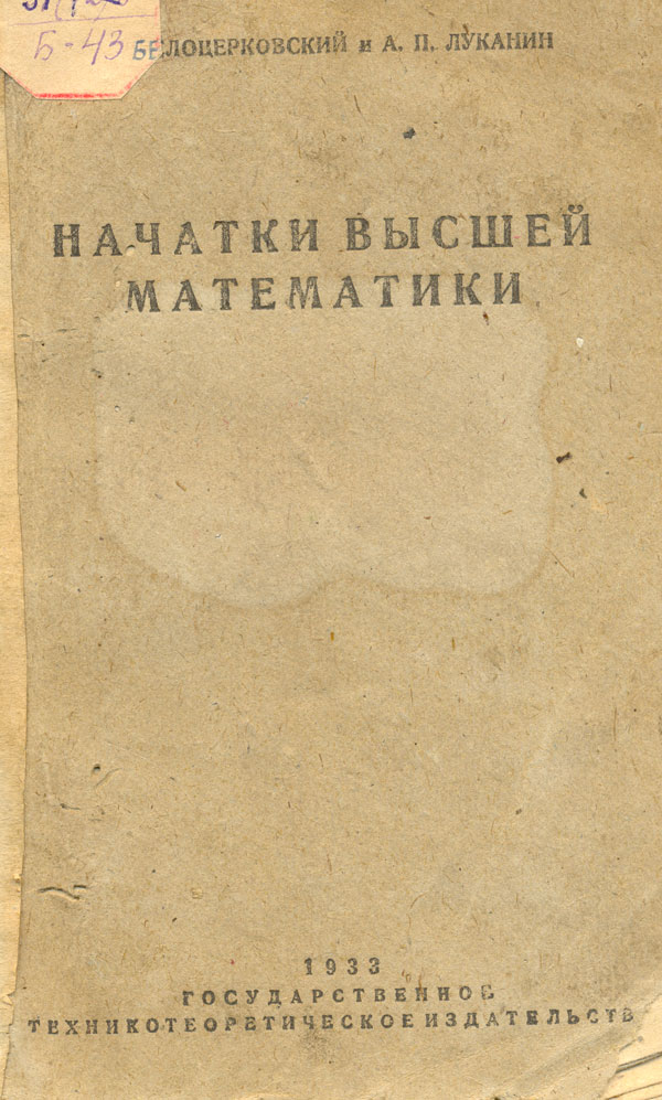 Начатки высшей математики : для квалифицированного рабочего, мастера, изобретателя, рационализатора / Б. В. Белоцерковский, А. П. Лукашин. - Ленинград ; Москва : Гос. техн.-теорет. изд-во, 1933. - 159 с.