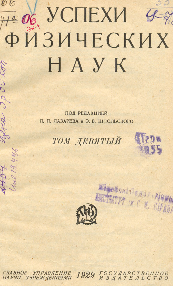 Успехи физических наук. Т. 9, [вып. 2] / под ред. П. П. Лазарева и Э. В. Шпольского. - [Москва] : Гос. изд-во, Гл. упр. науч. учр., 1929. - с. 141-250. - Библиогр.: с. 244-250 и в обл. ссылок.
