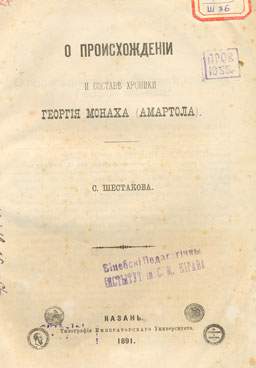 О происхожденiи и составе хроники Георгiя Монаха (Амартола). - Казань: Типографiя Императорскаго Университета, 1891. - 176 с. - Библиогр.: с. 175-176. Сигла хранения: фрк Введение