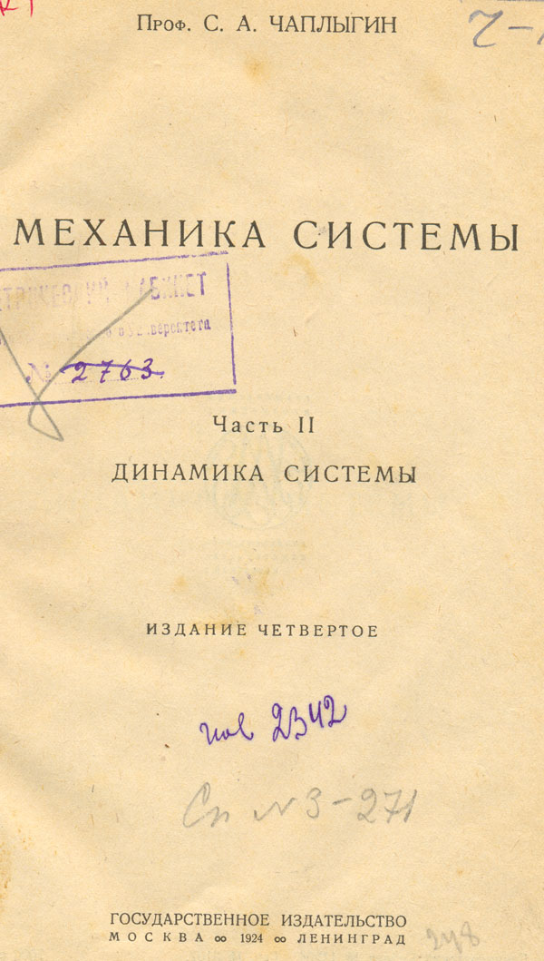 Механика системы. Ч. 2 : Динамика системы / С. А. Чаплыгин. - Изд. 4-е. - Москва ; Ленинград : Гос. изд-во, 1924. - 209 с. Сигла хранения: фрк Введение Оглавление