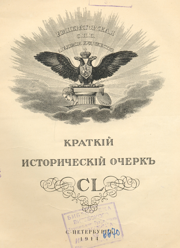 Императорская Санктпетербургская Академiя художеств. CL. [1764-1914] : краткiй историческiй очерк. - С.-Петербург : Т-во Р. Голике и А. Вильборг, 1914. - 64 с. - Библиогр. в обл. ссылок. - Экз. деф.: нет вкл. ил.