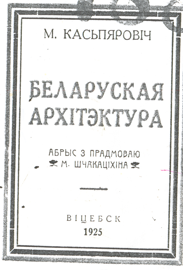 Беларуская архітэктура / М. Каспяровіч ; абрыс з прадмоваю М. Шчакаціхіна. - [ксеракопія]. - Віцебск : Выд. Віцебскага Акруговага Таварыства Краязнауства, 1925. - 52 стб. - Бібліягр.: с. 51-52.