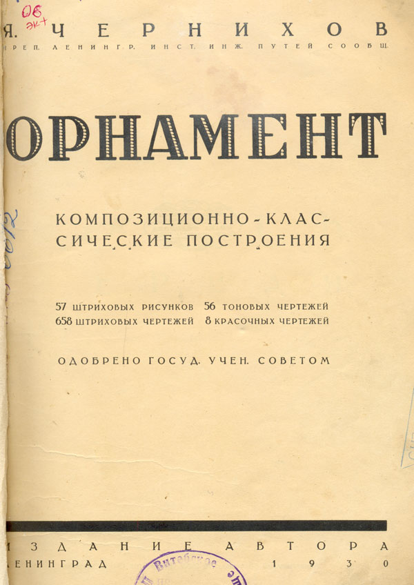 Орнамент : композиционно-классические построения / Я. Чернихов. - Ленинград : Издание автора, 1930. - 226 с. : ил., [7] вкл. цв. ил. - На обл. год изд. 1931.
