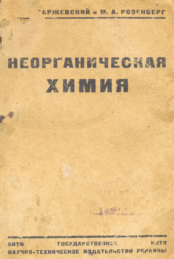 Неорганическая химия / Л. В. Писаржевский, М. А. Розенберг. - 4-е испр. и доп. изд. - Харьков ; Киев : ОНТИ НКТП, Гос. научно-техн. изд-во Украины, 1934. - 564 с. - Предм. указ.: с. 549-561.
