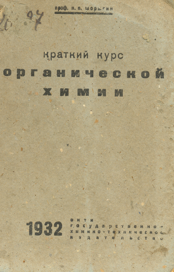 Краткий курс органической химии : для хим. втузов / П. П. Шорыгин. - 2-е изд. - Москва ; Ленинград : Гос. химико-технич. изд-во, 1932. - 318 с. - Алф. указ.: с. 309-318.