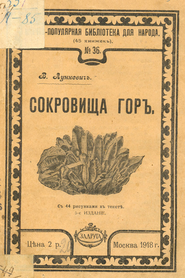 Сокровища гор. - 5-е изданiе. - Москва : Задруга, 1918. - 95 с. : ил. - (Научно-популярная библиотека для народа (45 книжек) ; № 36). Сигла хранения: фрк Введение Оглавление