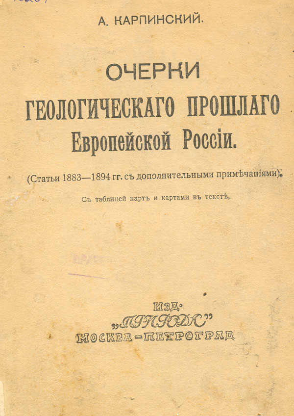 Очерки геологическаго прошлаго Европейской Россіи : статьи 1883-1894 гг. с дополнительными примечанiями : с таблицей карт и картами в тексте. - Петроград, 1919 ( : Военная Типография). - VI, 148 с. : ил. + 1 отл. л. карт. - (Классики естествознанiя). - Библиогр. в обл. ссылок и примечаний.