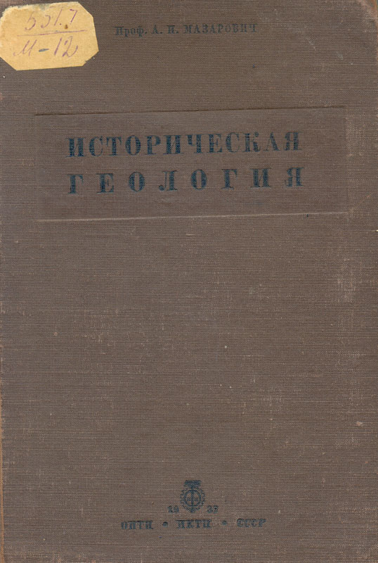 Историческая геология : учебник для втузов и вузов / А. Н. Мазарович ; рецензент В. А. Варсанофьева. - 2-е испр. и доп. изд. - Москва ; Ленинград : ОНТИ НКТП СССР, Гл. ред. геолого-разведочной и геодезической лит., 1937. - 464 с., [7] вкл. л. + 22 табл. (прилож.). - Библиогр.: с. 459, 461-463. - Указатели : с. 439-458.