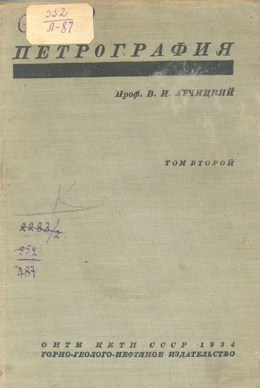 Лучицкий, В. И.rn Петрография : учебник для геолого-разведочных втузов системы НКТП. Т. 2, ч. 3 / В. И. Лучицкий. - 4-е переработ. изд. - Москва ; Ленинград ; Новосибирск : ОНТИ НКТП СССР, Гос. научно-технич. горно-геолого-нефтяное изд-во, 1934. - 230 с., [1] вкл. л. + 17 табл. (прилож.). - Алф. указ.: с. 223-228.rnrn