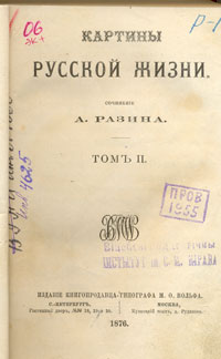 Сочиненiя. Т. 2 : Картины русской жизни / А. Разин. - С.-Петербург ; Москва : Изданiе книгопродавца-типографа М. О. Вольфа, 1876. - 321 с. Сигла хранения: фрк Оглавление