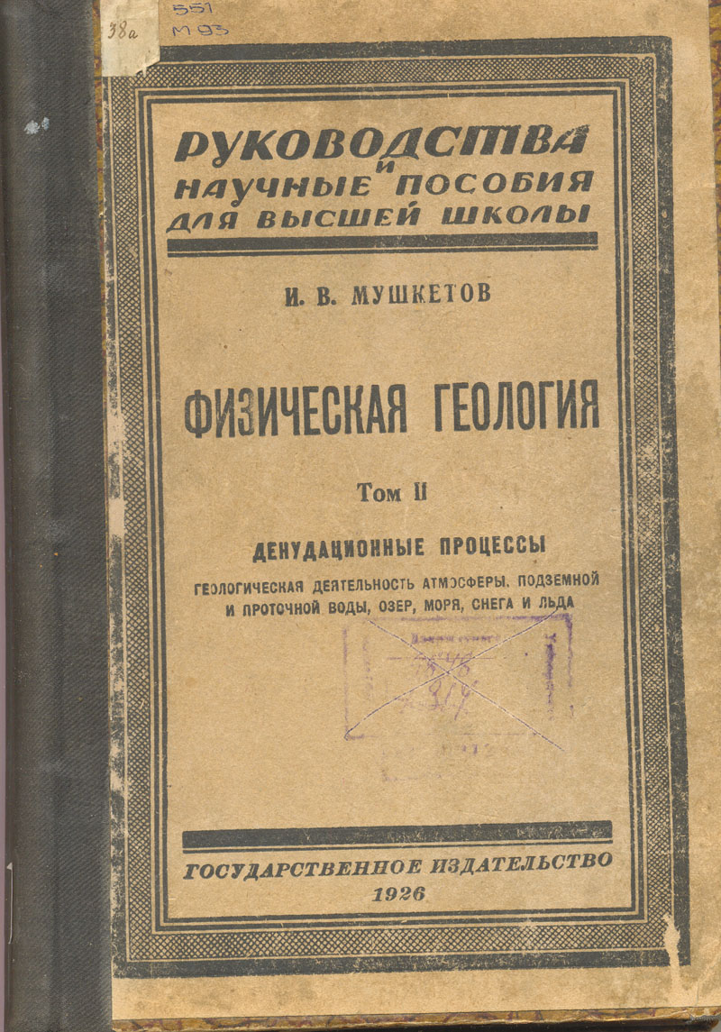 Физическая геология : с 542 рис. в тексте. Т. ІІ : Денудационные процессы. Геологическая деятельность атмосферы, подземной и проточной воды, озер, моря, снега и льда / перераб. и доп. Д. И. Мушкетов / И. В. Мушкетов. - Изд. 3-е. - Москва ; Ленинград : Гос. изд.- во, 1926. - VII, 636 с. - (Руководства и научные пособия для высшей школы). - Библиогр. в конце глав.