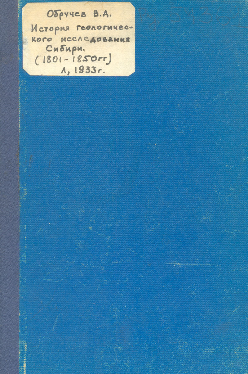 Обручев, В. А.rn История геологического исследования Сибири. Период второй (1801-1850 годы) (Гельмерсен, Гофман, Миддендорф, Чихачев, Щуровский, Эрман) / В. А. Обручев ; АН СССР. - Ленинград : Изд-во АН СССР, 1933. - 257, 43 с. - Библиогр.: с. 19-43. - Хронол. указ. авторов: с. 249-250. - Предм. указ.: с. 251-257.rnrn