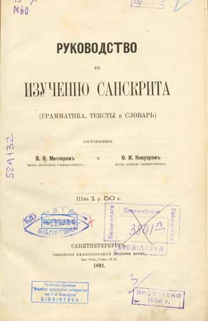 Руководство к изученiю санскрита : (грамматика, тексты и словарь) / составленное В. Ф. Миллером и Ф. И. Кнауэром. - Санктпетербург, 1891 (Типографiя Императорской Академiи Наук). - VIII, 157 с.